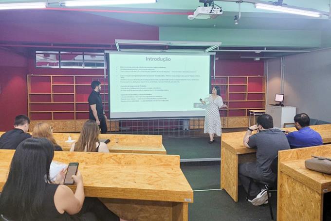 Um dos momentos mais aguardados foi a revelação dos artigos premiados. O trabalho “Segurança do trabalho como fator estratégico: percepções de profissionais do Oeste Paulista”, desenvolvido por Arthur Jovelino Taguti e Eduarda Marques de Sá Bocal, sob orientação da Dra. Érika Kato, recebeu destaque.
