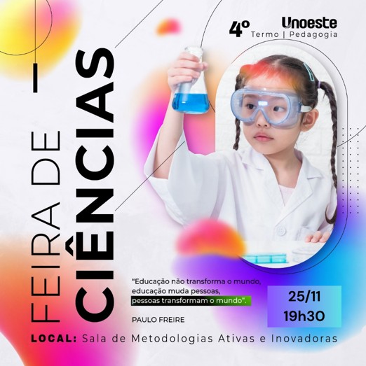 A Mostra Científica é um importante momento de exposição da Feira de Ciências dos estudantes do 4º termo do curso de Pedagogia. Os estudantes aprofundaram os estudos e criaram diversos experimentos de Ciências que podem ser utilizados na Educação Básica, demonstrando que a universidade também é um lugar de práticas pedagógicas concretas, criativas e aplicáveis ao cotidiano escolar.