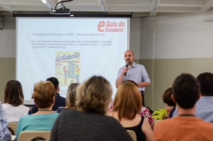 O diretor de redação do Guia do Estudante, da Editora Abril, Fabio Volpe, esteve nesta terça-feira (14) na Unoeste para falar sobre a tradicional avaliação dos cursos superiores, realizada de forma anual pelo referente veículo de comunicação e que em 2016 mediu a qualidade de 13,4 mil graduações e elegeu os 6,9 mil melhores cursos. Trata-se de uma pesquisa de opinião feita, basicamente, com professores e coordenadores de curso.