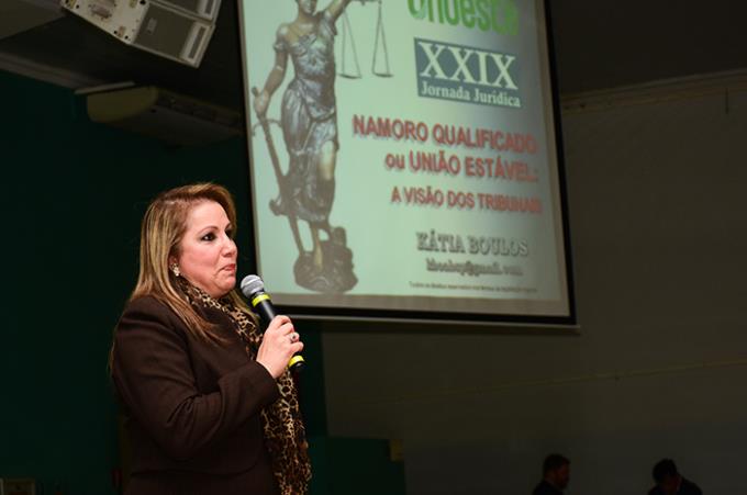 “Namoro qualificado ou união estável: a visão dos tribunais” foi tema da palestra de abertura da jornada. A Dra. Kátia Boulos, advogada e consultora em Direito de Família e Sucessões, conselheira seccional e presidente da Comissão da Mulher Advogada da OAB/SP, reforçou a importância de saber distinguir esses institutos, pois, embora sejam parecidos, seus efeitos são completamente diferentes. “A união estável tem todos os efeitos jurídicos do casamento, sejam eles pessoais, patrimoniais, sucessórios e sociais, enquanto o namoro não gera efeito algum”. Conforme a advogada, a coabitação não determina a relação afetiva do casal. “Os dois podem morar na mesma casa e manter namoro qualificado, assim como podem morar separados e demonstrar união estável”, explica.
